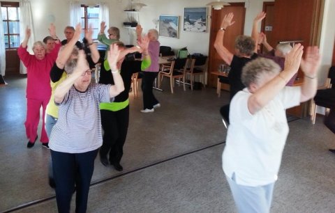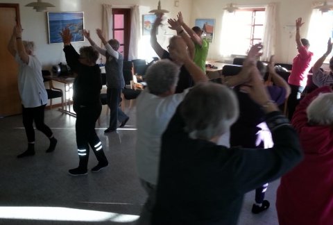Hver mandag formiddag kl.9-11 - september-april har lyspunktet gymnastik på Folkets hus. Start 22. september 2025 til 27. april 2026.